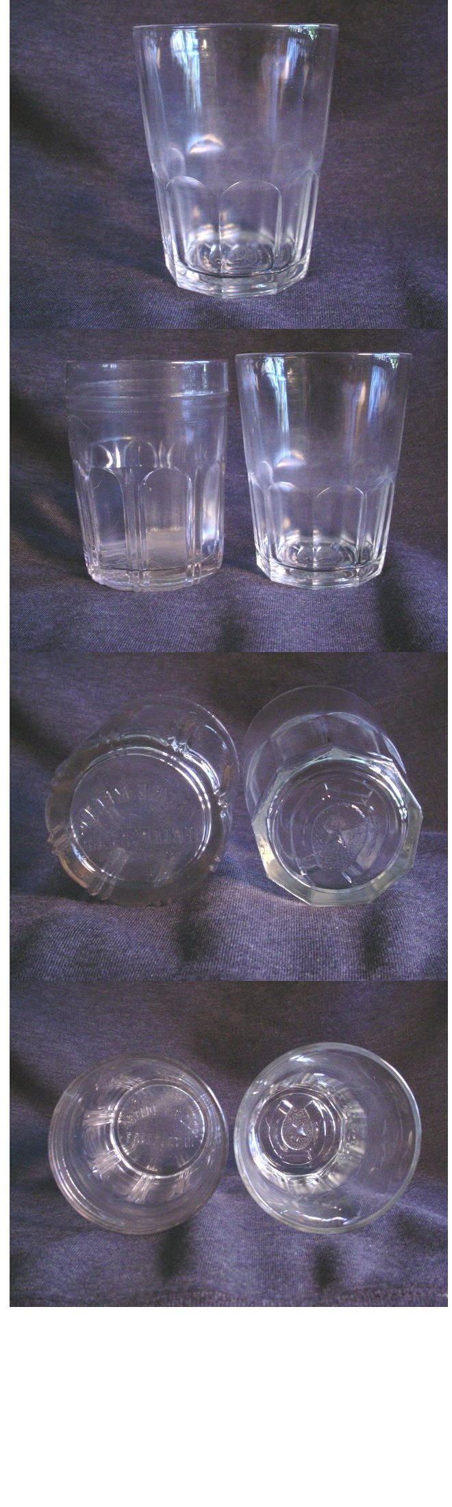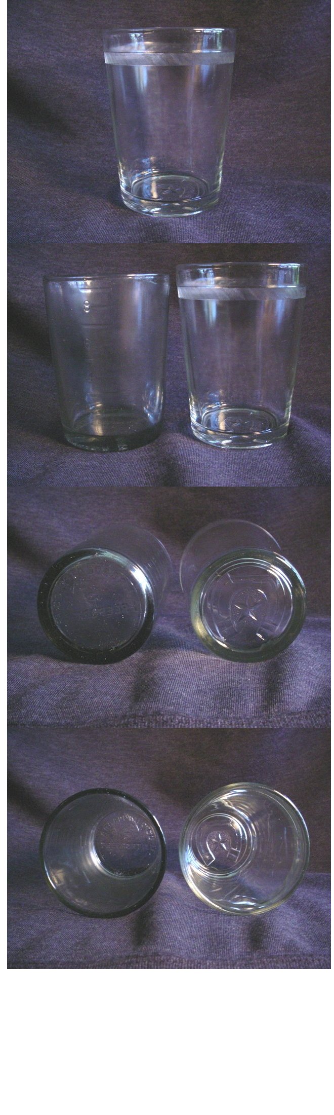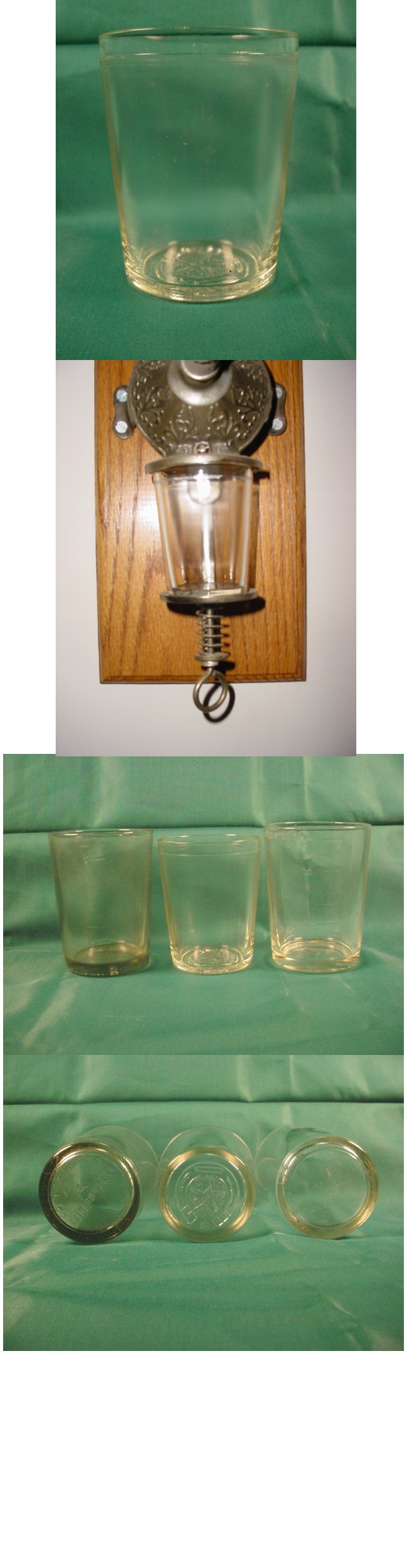 side large mouth Catch Cup These measure 3" across the top and will fit the same grinders as the cup with panels shown above. They are a little large for the later Arcade No. 3's as they will slightly over-hang on the cast iron lip where the base of the grinder meets the top of the glass, but they will fit some of the earlier No. 3's which were made with a wider base. |