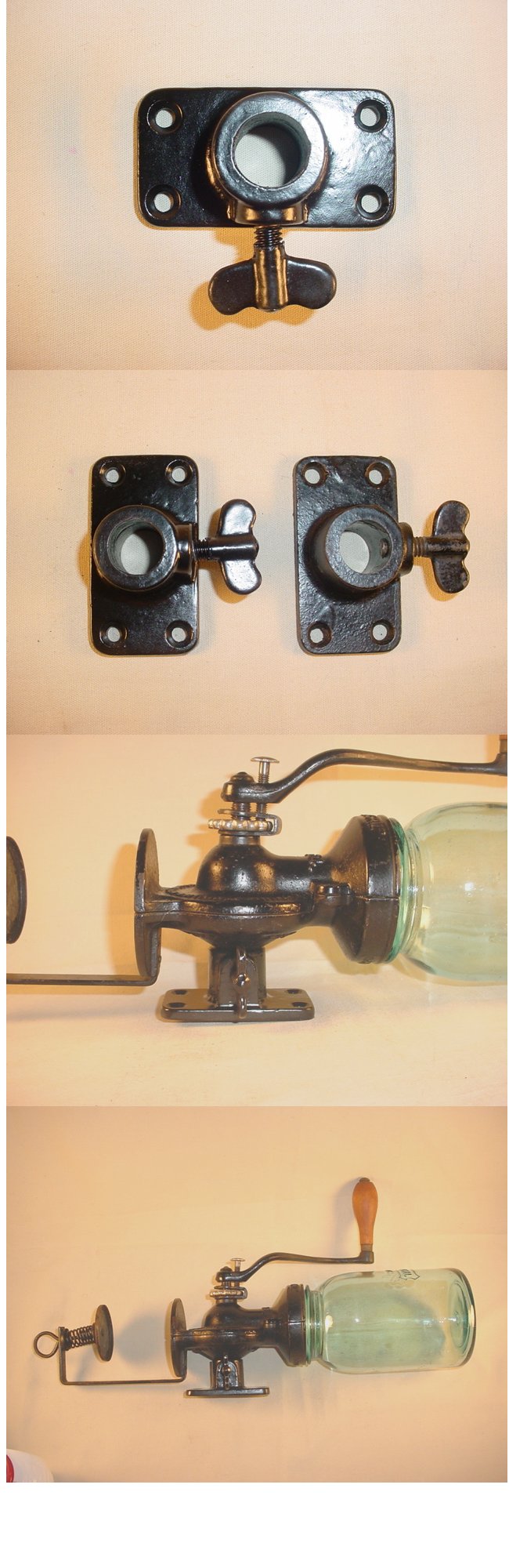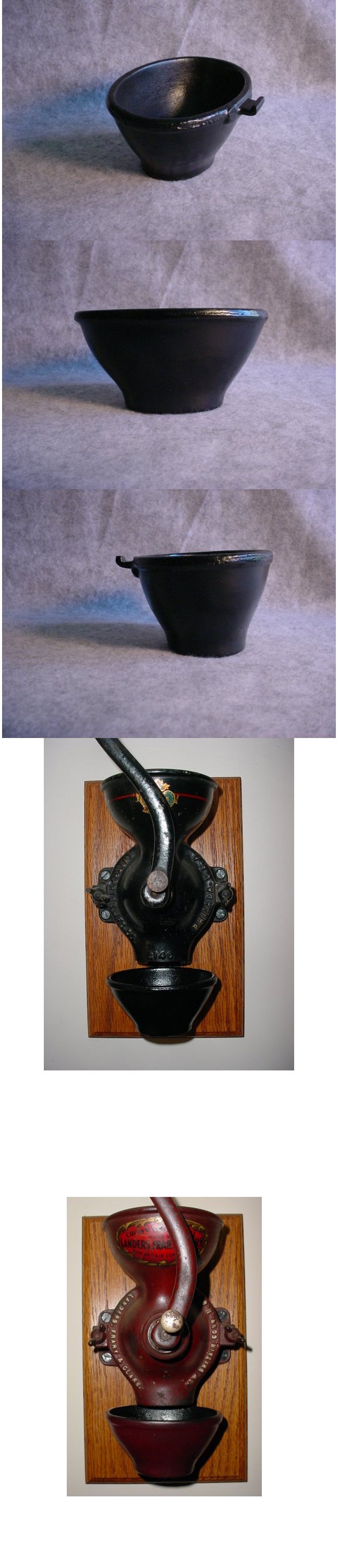 | This is a cast alloy copy of the wall mounting bracket for a Landers Frary and Clark Universal No. 24. coffee grinder. It will complete your grinder and allow you to mount it as it was originally designed. When you click on the picture it is shown beside an original mount (which is on the right) in the second picture and mounted on a No. 24 in the last two pictures | Temporarily out of stock |