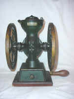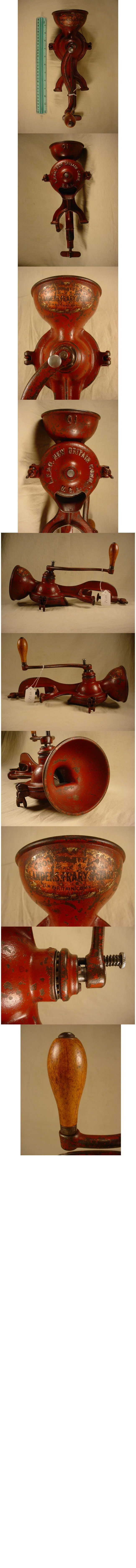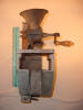This wall mount mill was manufactured by Landers Frary and Clark in New Britain Conn. sometime around the turn of the last century. It is in very good original condition with the original label being around 95% intact. It has a replacement catch cup that is a very good copy of an original that was painted to closely match the original paint on the body. The only things to report are some minor paint loss and extra paint mostly where grandpa slopped it on the mounting brackets when painting the wall. It was disassembled, cleaned and the interior parts were wire brushed to like new condition so it's ready to hang and use. Item No.4034  |